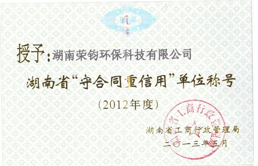 我公司于2013年6月份榮獲了由湖南省工商行政管理局頒發(fā)的“守合同重信用”的單位稱號(hào),期待“榮鈞”業(yè)務(wù)越做越大,公司發(fā)展越來(lái)越好,我們將繼續(xù)堅(jiān)持以誠(chéng)信為本,質(zhì)量當(dāng)先,客戶至上的宗旨,大力發(fā)展我們的榮鈞品牌!